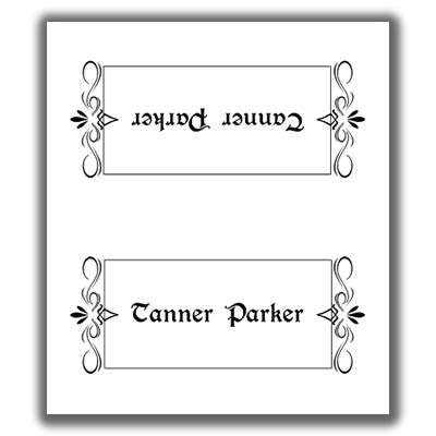 This place card prints 4-up on Avery® Place Card Paper 5302